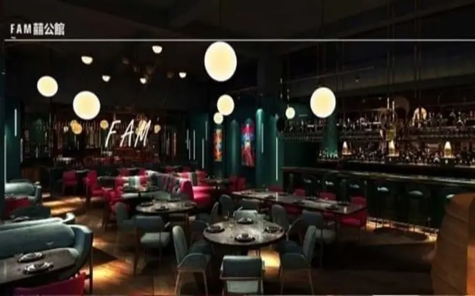 位於西九⽂化區的新派中菜館,糅合⼿⼯中菜 (Food)、藝術 (Art) 與⾳樂